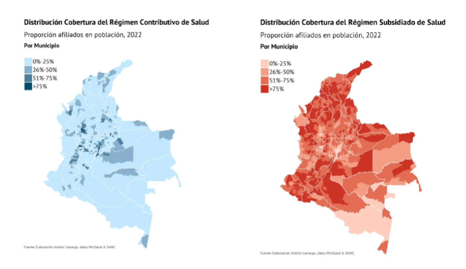 In this context, I have analyzed the municipal coverage levels of the system and the geographic distribution of resources, closely examining the functioning of each regime: subsidized (without contributions) and contributory (with contributions). It is evident that the Colombian healthcare system is an effective social policy, redistributing resources to ensure access to healthcare services for the population without the means to pay.